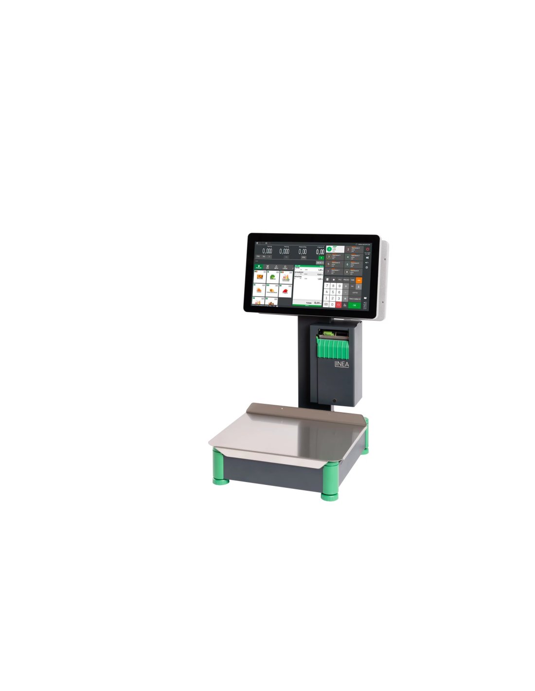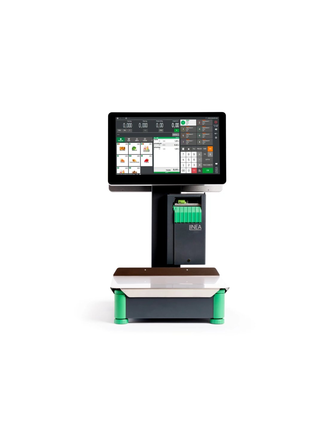 - Display full HD da 15”: doppio schermo antisfondamento a colori, touch screen capacitivo per l’operatore e display asincrono per il cliente, ideale per mostrare promozioni.